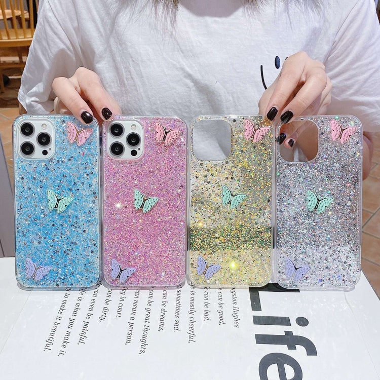 Funda para Teléfono TPU Epoxi iPhone 14 Pro Max con Lentejuelas Estrelladas y Diamantes de Imitación (Azul)