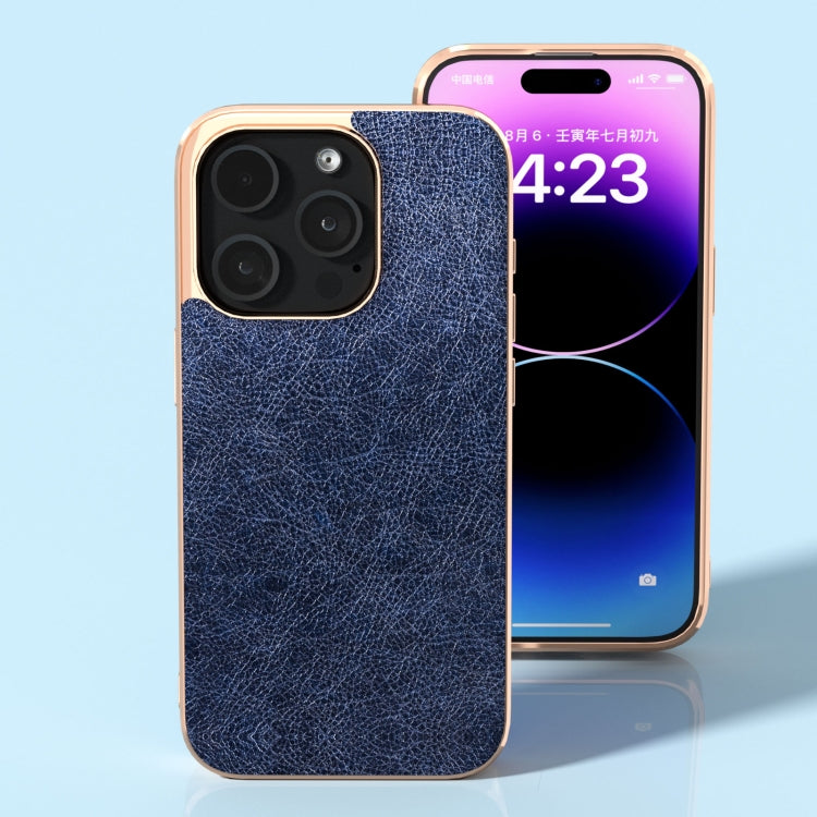 Funda para iPhone 14 Pro Max Retro Litchi Texture PU Azul