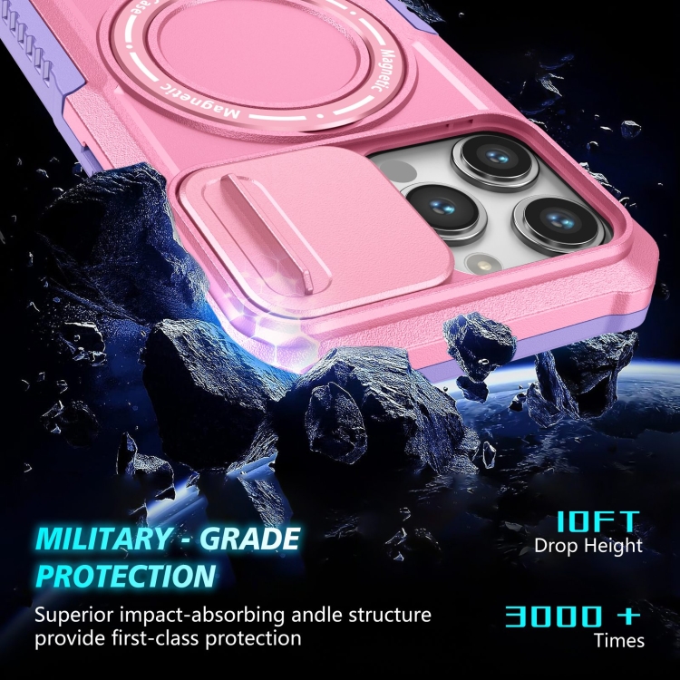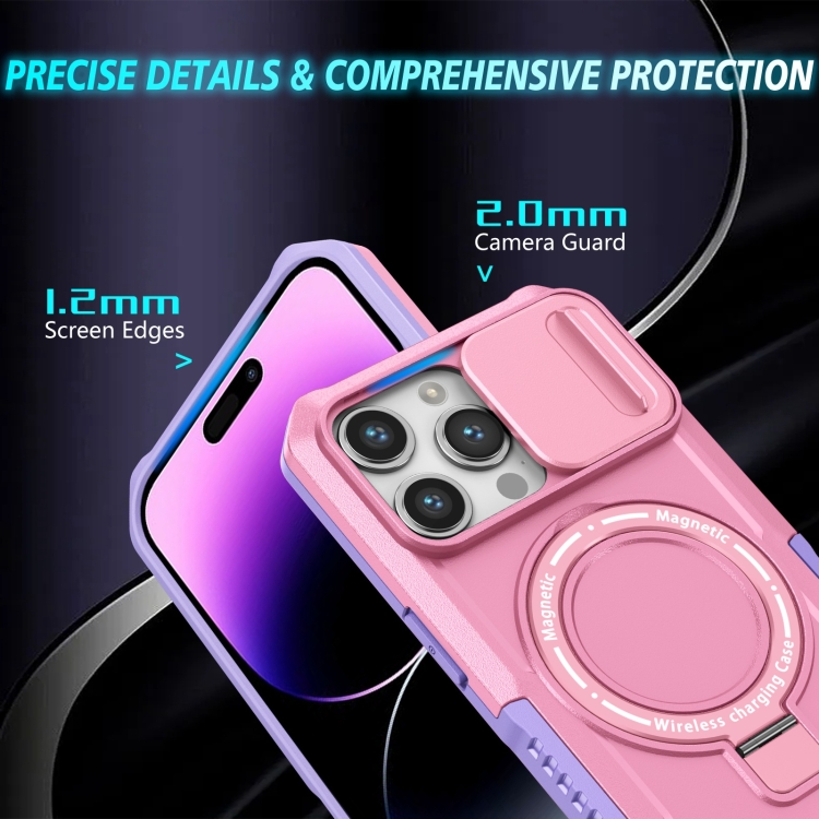 Funda para teléfono iPhone 14 Pro Max Sliding Camshield Magsafe Holder TPU Hybrid (Púrpura Rosa)
