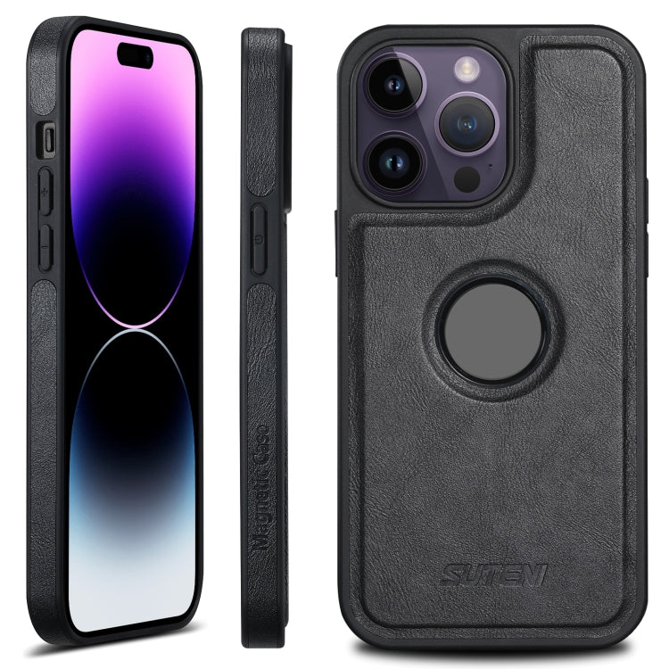 Funda para iPhone 14 Pro Max Suteni G1 Magsafe Cuero con Parte Trasera (Negro)