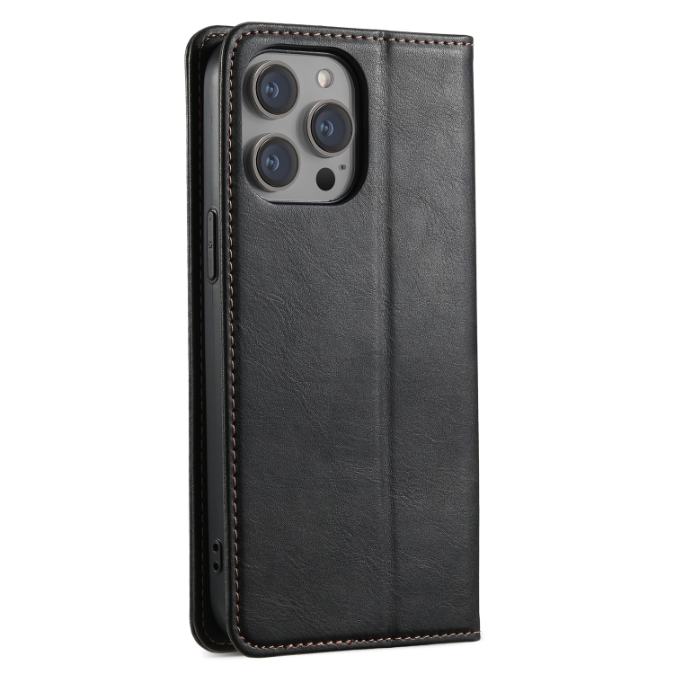 Funda para teléfono Suteni J02 para iPhone 14 Pro Max con billetera de cuero de cera de aceite (Negro)