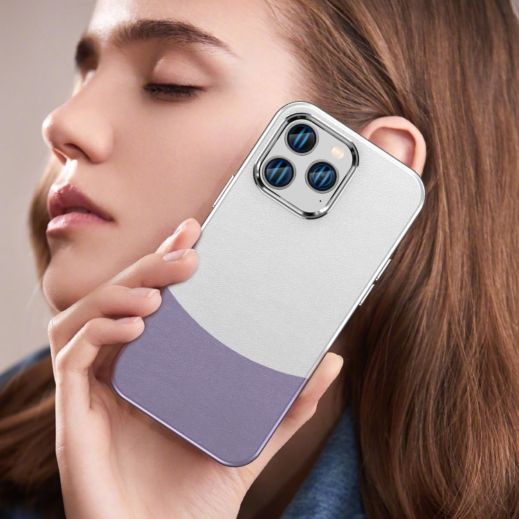Funda para iPhone 14 Pro Max Textura de Cuero Magsafe Magnética TPU + PC (Púrpura Claro)