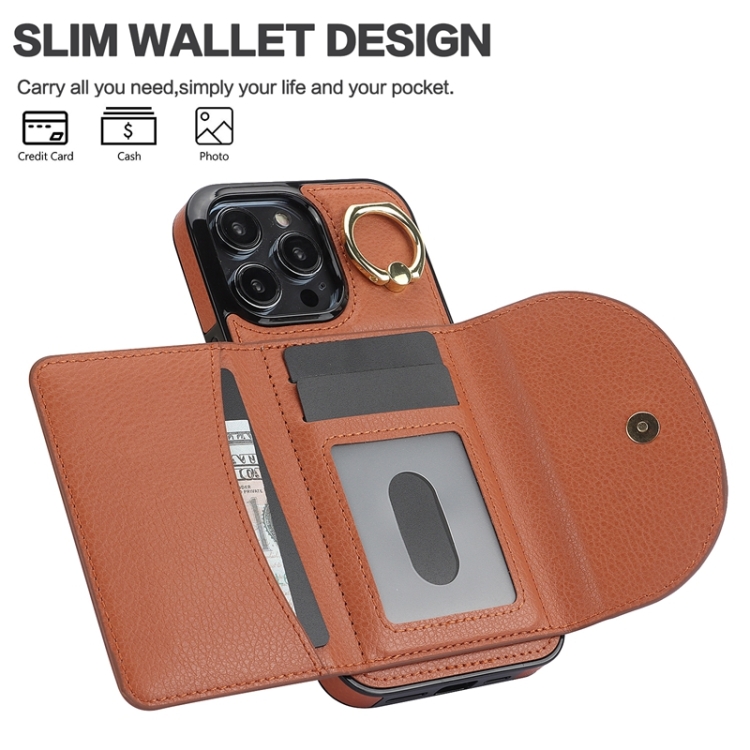 Estuche para Teléfono iPhone 14 Pro Max Ym006 con Soporte para Anillo y Tarjeta (Marrón)