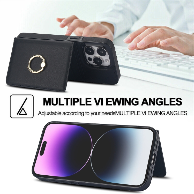Estuche para Teléfono iPhone 14 Pro Rfid Tarjeta Antirrobo con Soporte para Anillo (Negro)