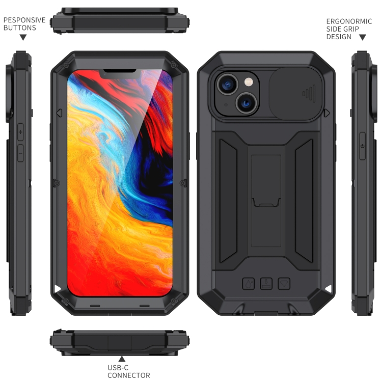 Estuche para iPhone 14 R-Just a Prueba de Golpes Agua y Polvo (Negro)