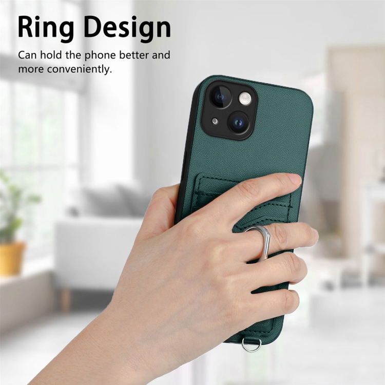 Estuche para Teléfono iPhone 14 R20 con Soporte para Tarjeta y Anillo (Verde)