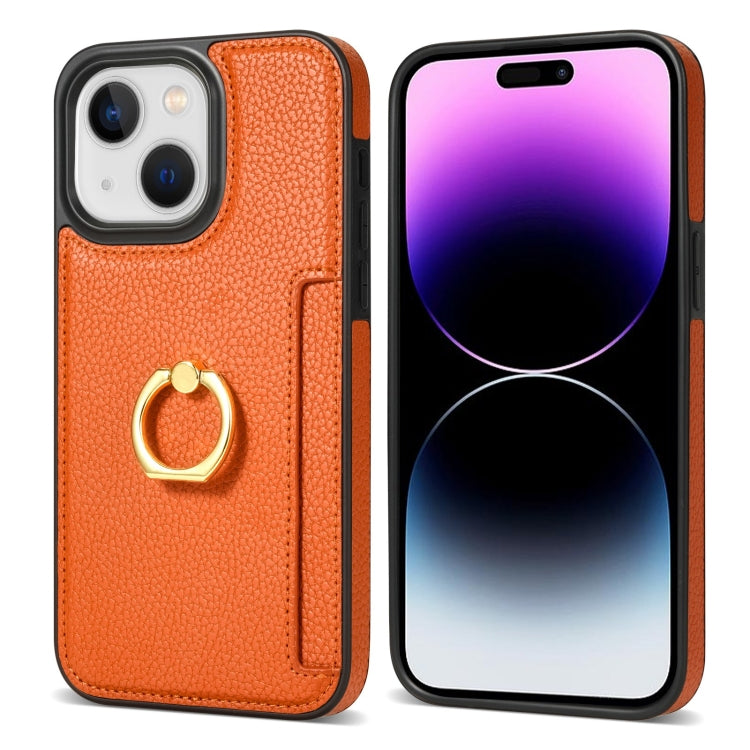 Funda Trasera para iPhone 14 Ring Card Litchi Cuero (Naranja)