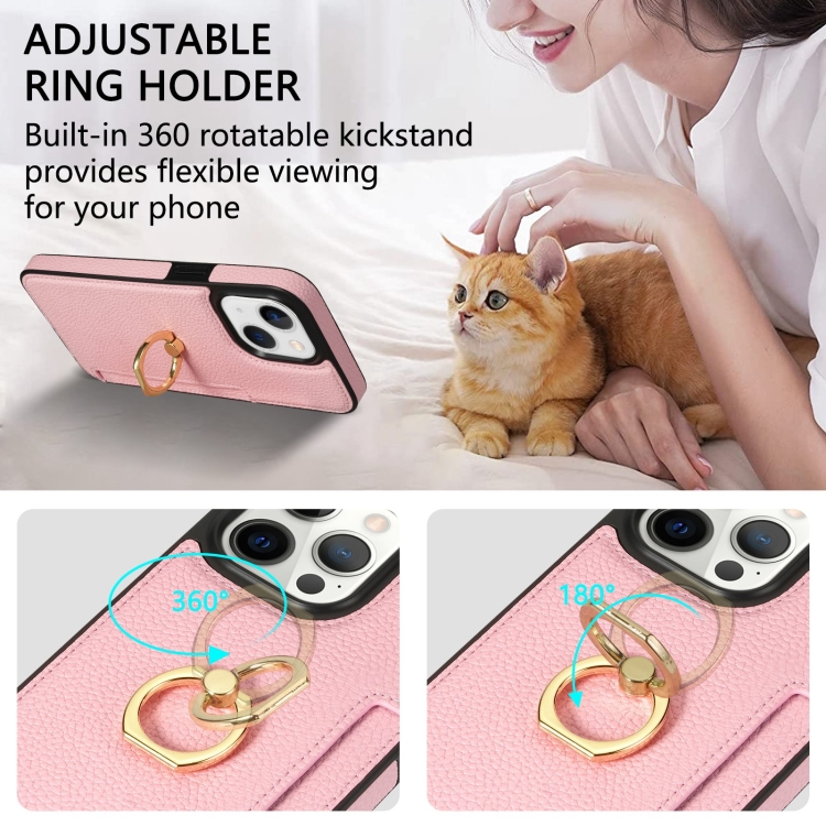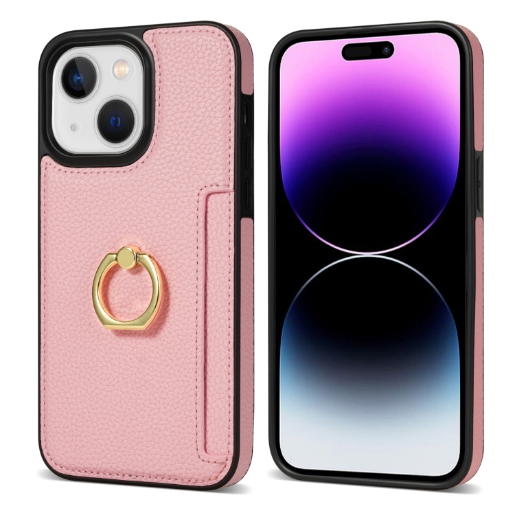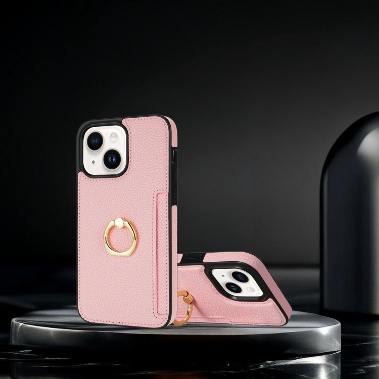 Funda Trasera para iPhone 14 Ring Card Litchi Cuero (Rosa)