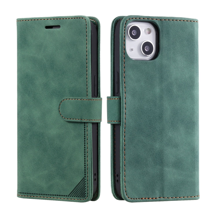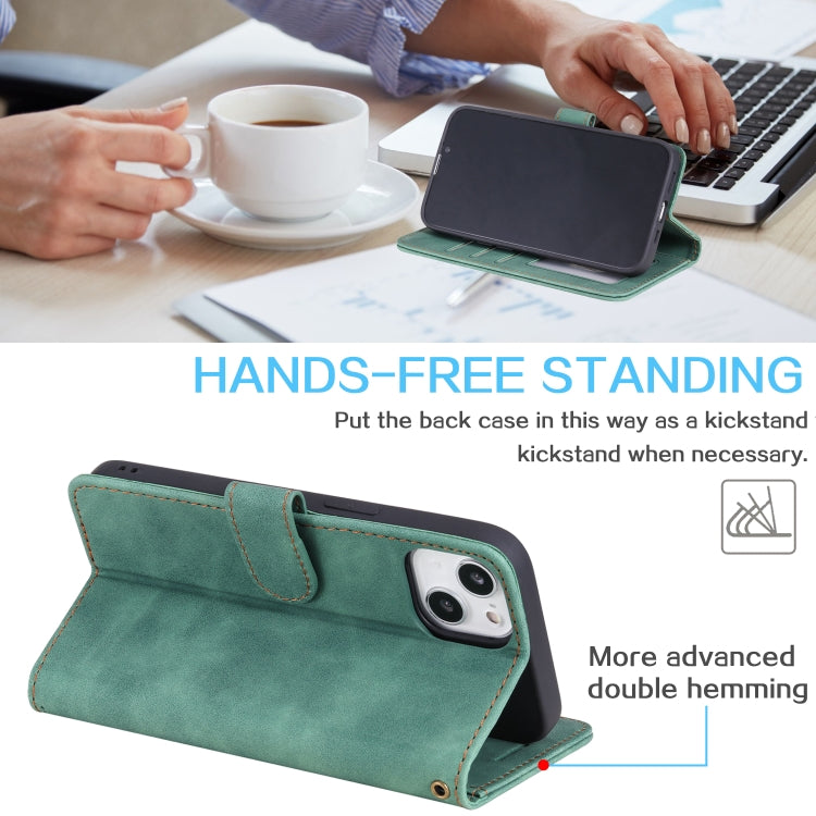 Funda para iPhone 14 Skin Feel con Tapa Horizontal de Cuero y Cepillo Antirrobo (Verde)