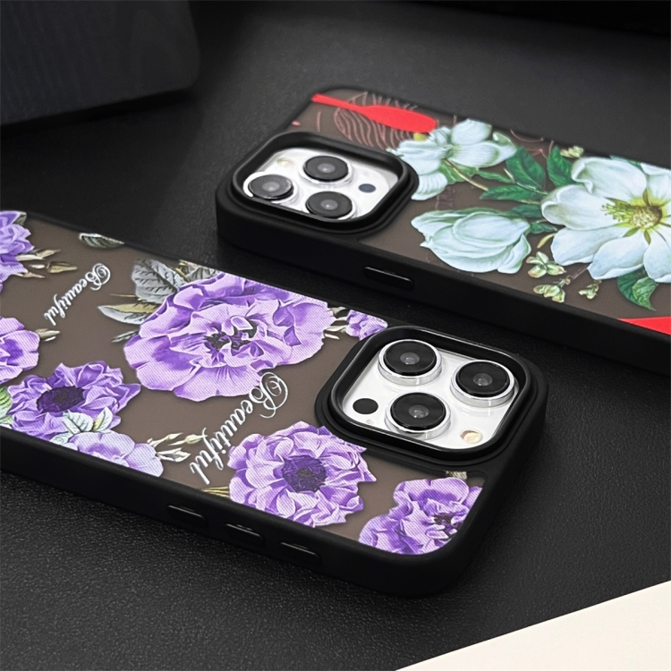 Funda para Teléfono iPhone 14 Skin Feel Matte TPU + PC a Prueba de Golpes (Flor Morada)