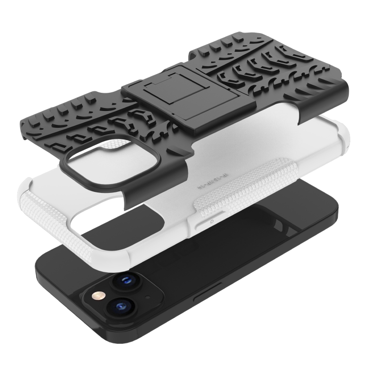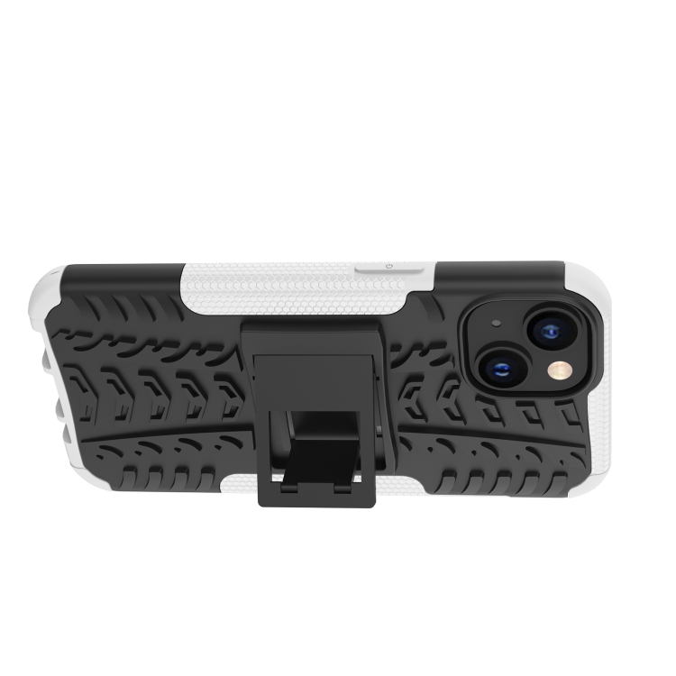 Funda para Teléfono iPhone 14 TPU + PC Tire Texture con Soporte (Blanco)
