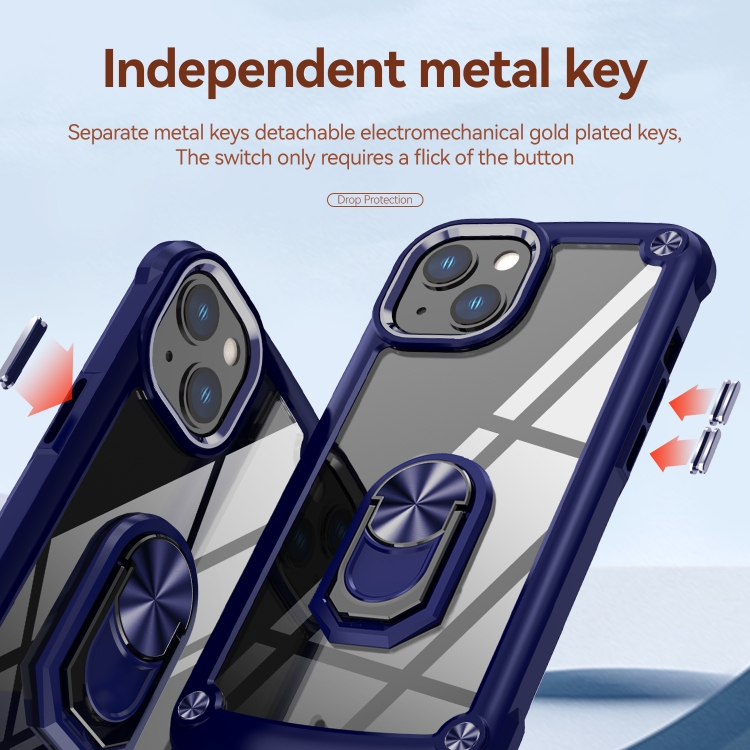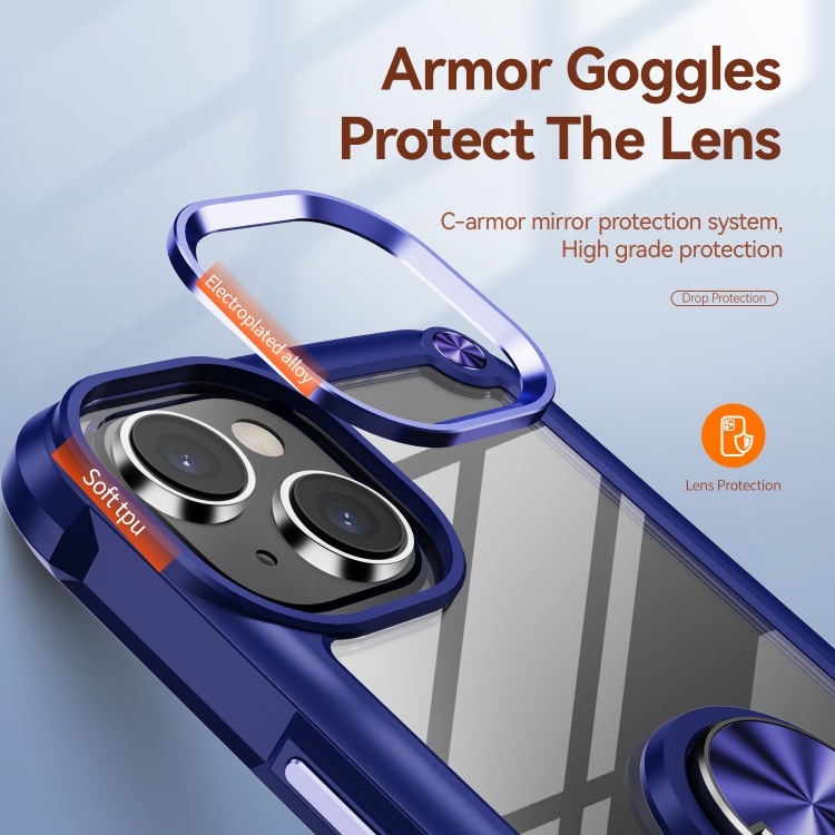 Estuche para Teléfono iPhone 14 TPU + PC con Protección de Lente y Soporte para Anillo (Azul)