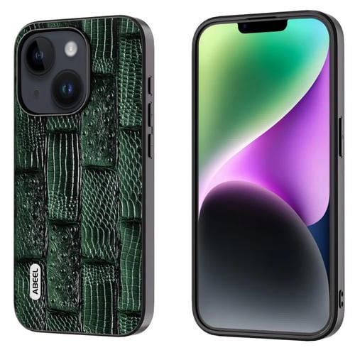 Funda de Teléfono Abeel iPhone 15 Patrón Mahjong Cuero Genuino Borde Negro (Verde)