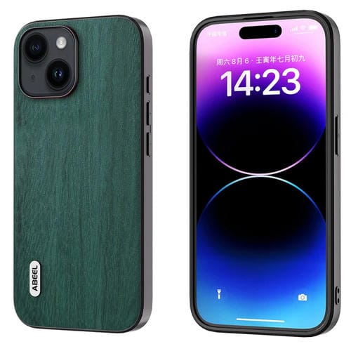 Funda de Teléfono Abeel para iPhone 15 Pu con Textura de Madera (Verde)