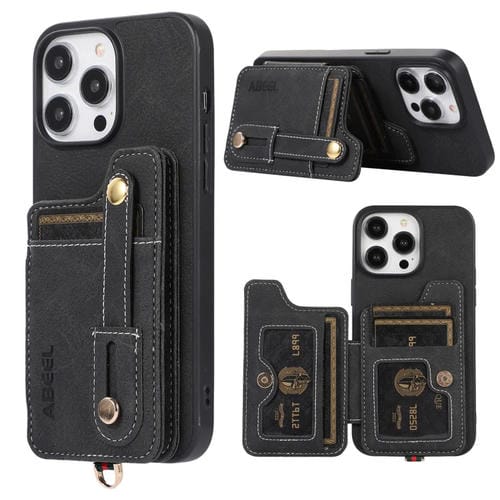 Funda para iPhone 15 Abeel Litchi Texture Card Bag PU Phone Case (Negro)