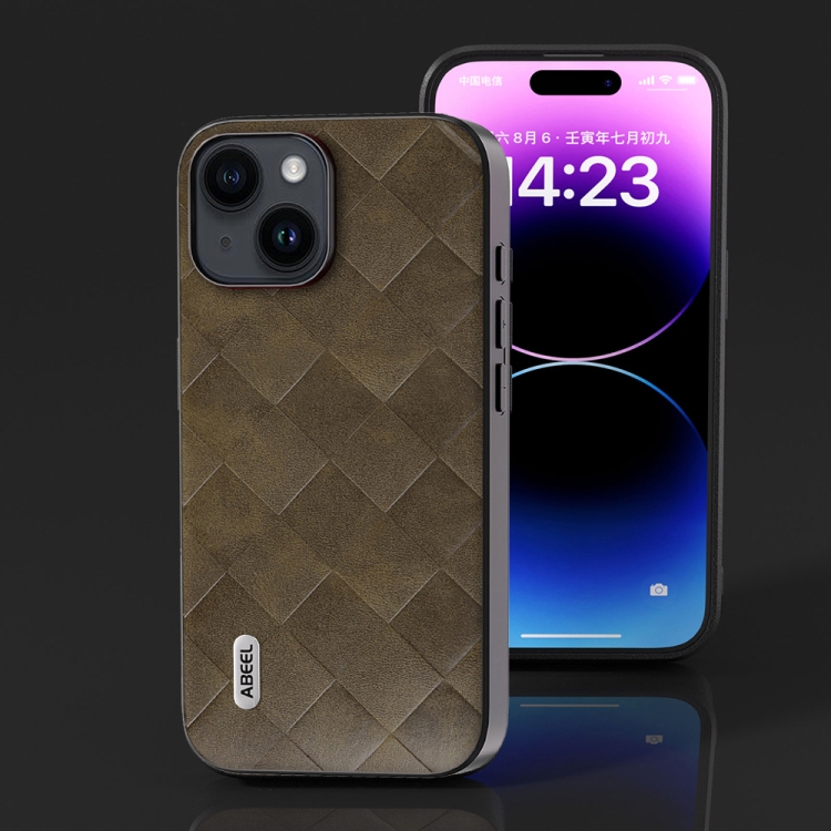 Funda para iPhone 15 Abeel Weave Plaid PU Phone Case (Verde)