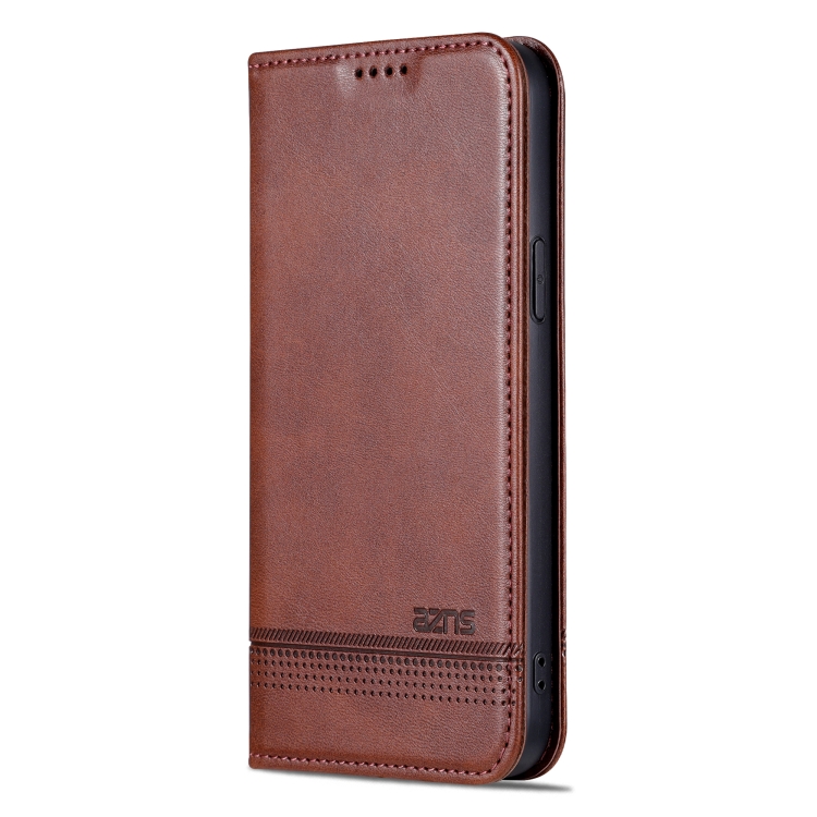 Funda de Teléfono para iPhone 15 Azns Cuero Textura de Becerro Magnético (Marrón Oscuro)