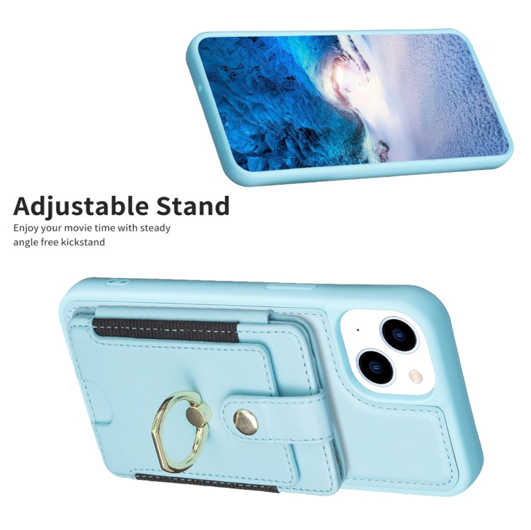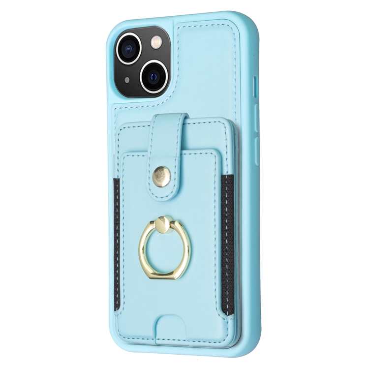 Funda para Teléfono iPhone 15 Bf27 con Soporte Tarjeta y Anillo de Metal (Azul)