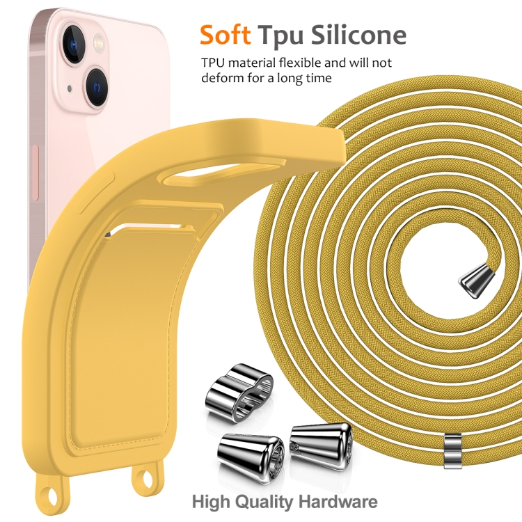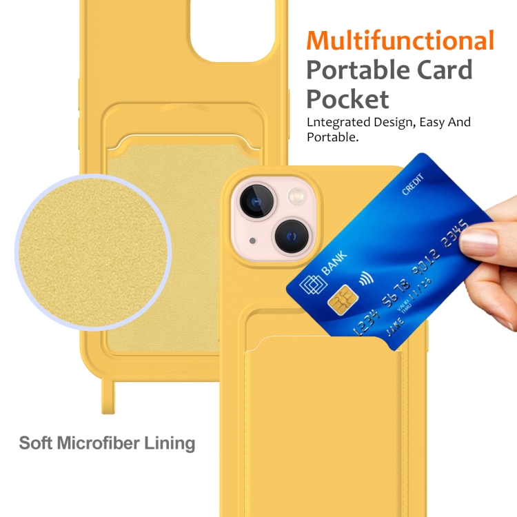 Funda para Teléfono iPhone 15 Bolsa para Tarjeta Integrada Silicona Líquida con Cordón (Amarillo)