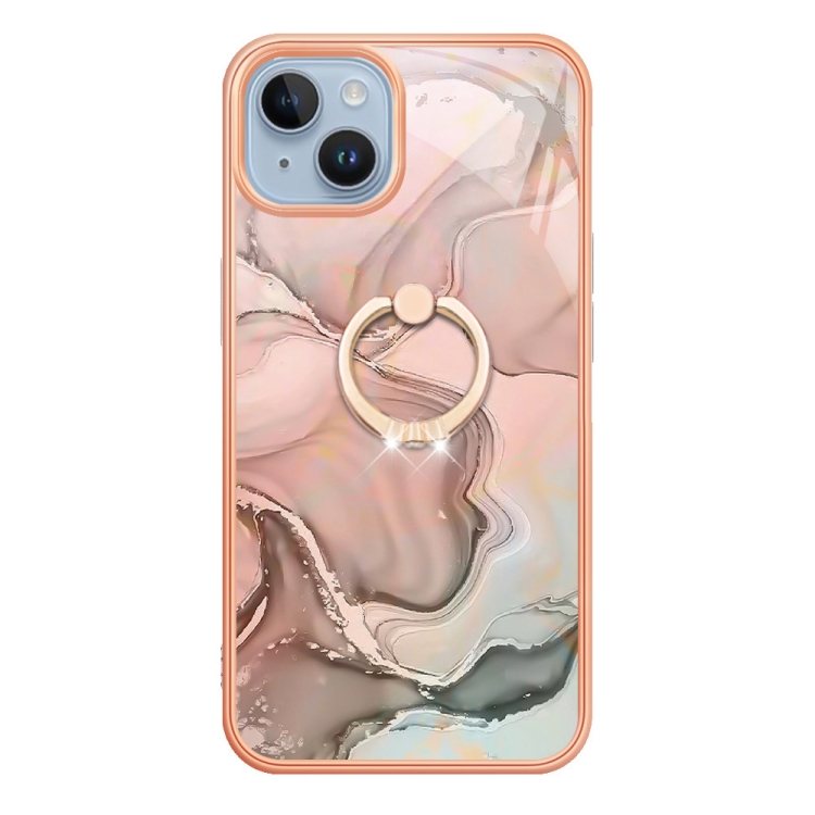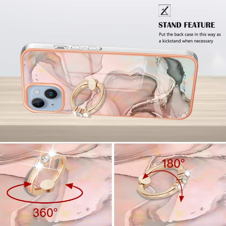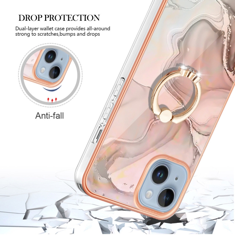 Caja de Teléfono para iPhone 15 Imd Doble Cara Mármol Galvanizado con Anillo (Oro Rosa)