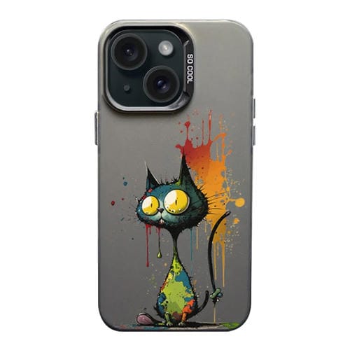 Funda para iPhone 15 Color Ink Frosted PC y TPU con diseño Gato de Ojos Grandes