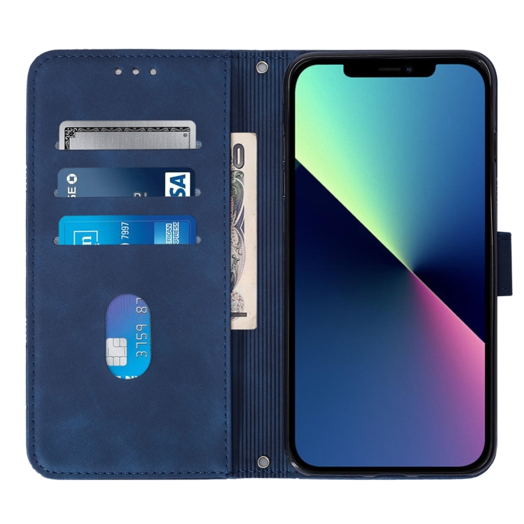 Funda para iPhone 15 Crossbody 3D de Cuero con Tapa En Relieve (Azul)