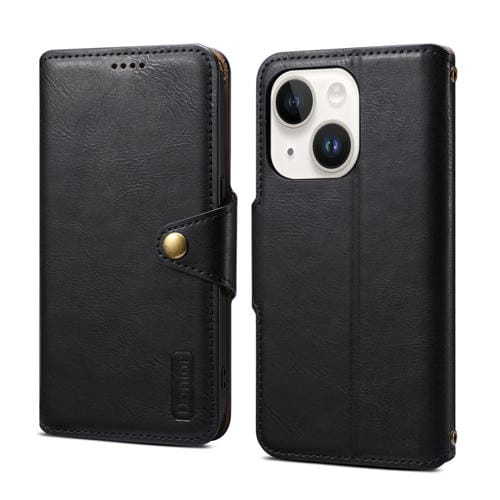Funda para Teléfono Denior iPhone 15 Cuero Estilo Billetera Textura Piel de Vaca (Negro)