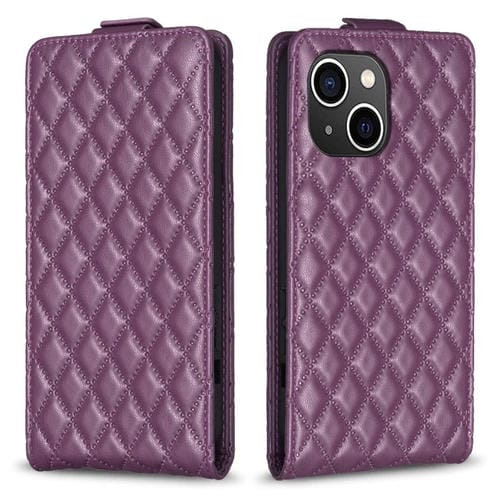 Funda para iPhone 15 Diamond Lattice de Cuero con Tapa Vertical (Púrpura Oscuro)