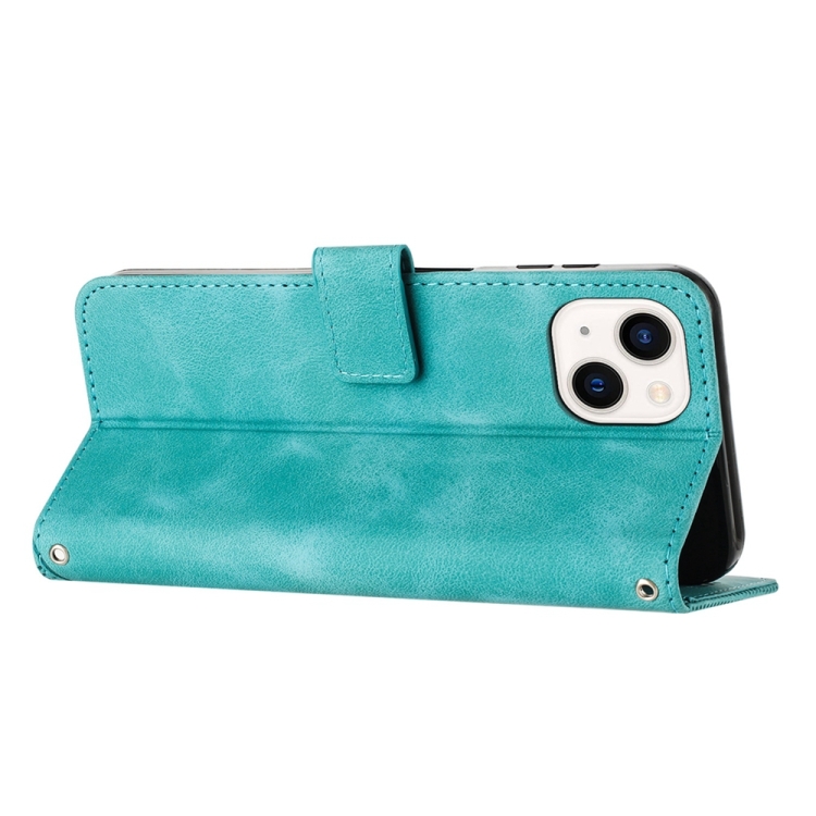 Funda de Cuero para iPhone 15 Dream Triangle con Cordón (Verde)