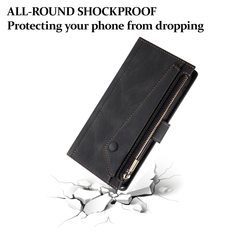 Funda para iPhone 15 Eseble Retro Frosted Rfid Flip de Cuero (Negro)