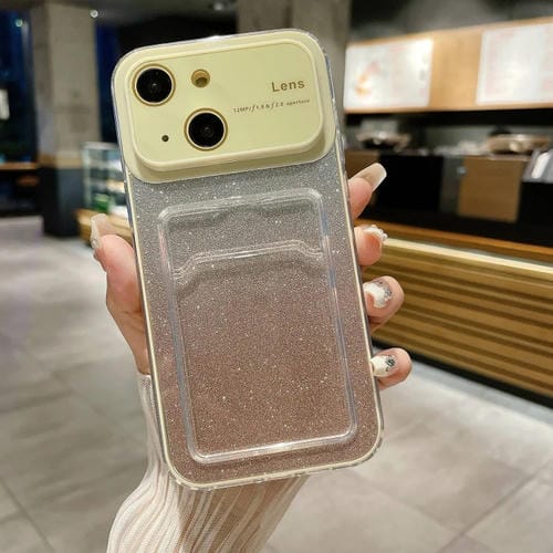 Estuche para Teléfono iPhone 15 con Brillo Degradado Ventana Grande y Ranura para Tarjeta (Amarillo)