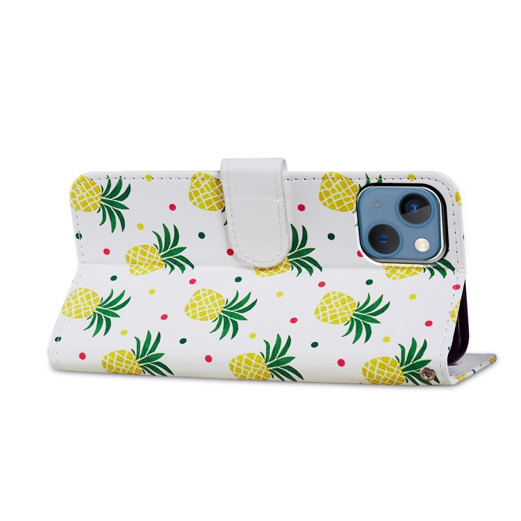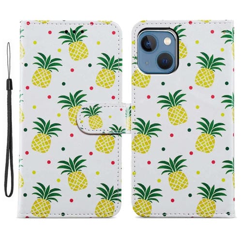 Estuche para Teléfono iPhone 15 Cuero con Dibujo Coloreado (Piña)