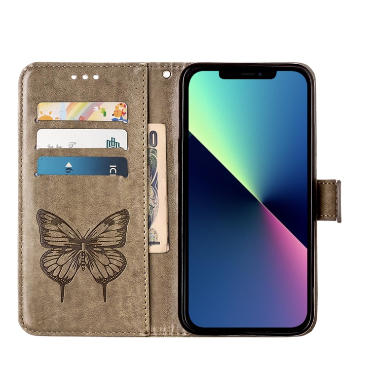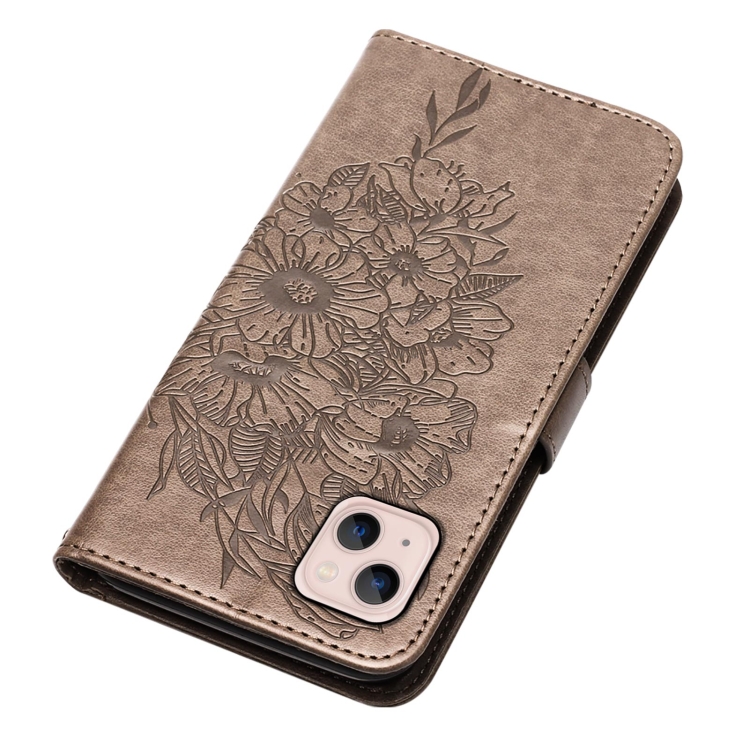 Estuche para Teléfono iPhone 15 Cuero con Mariposa en Relieve (Gris)