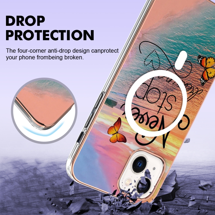 Estuche para Teléfono iPhone 15 Imd Magsafe TPU Doble Cara Patrón Mármol (Dream Butterfly)