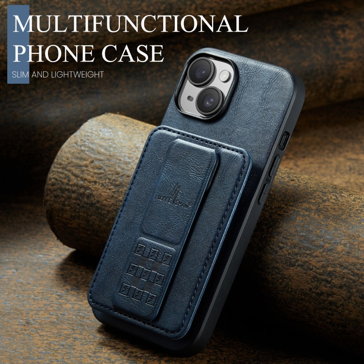 Funda para teléfono Fierre Shann iPhone 15 Oil Wax con tarjetero de cuero de vaca (Azul)