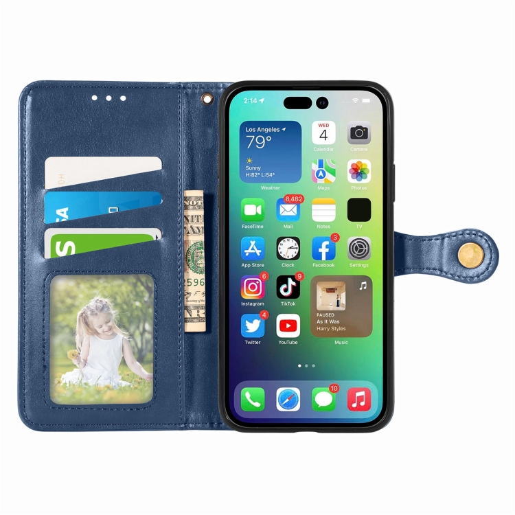 Funda para iPhone 15 Cuero Hebilla Color Sólido Retro (Azul)