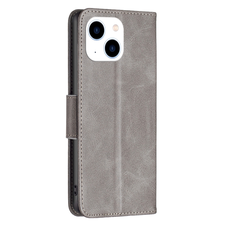 Funda de Cuero para iPhone 15 con Tapa Color Puro y Textura de Piel de Cordero (Gris)