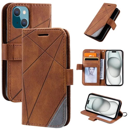 Funda para Teléfono iPhone 15 Cuero Empalme Sensación de Piel (Marrón)