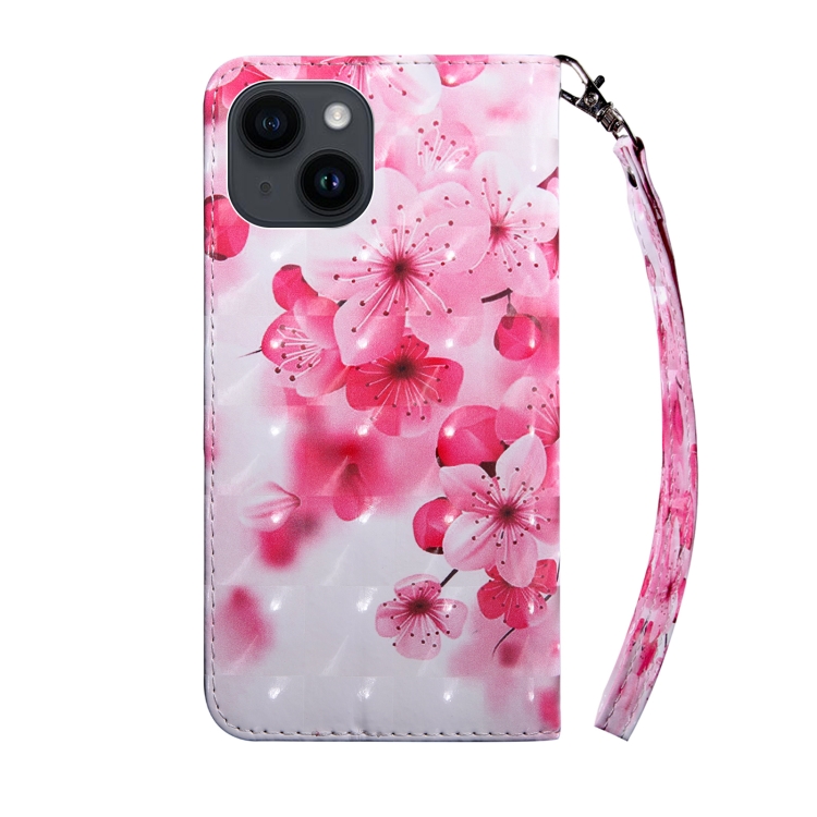 Funda de Cuero para iPhone 15 Pintada en 3D con Flor Roja