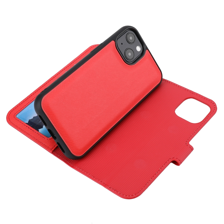Funda para iPhone 15 Cuero Pu Desmontable Textura Cruzada Horizontal (Rojo)