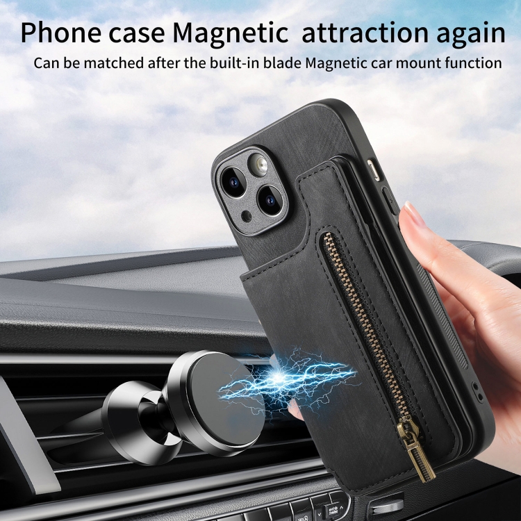 Funda para iPhone 15 Cuero Retro con Cremallera y Billetera (Negro)