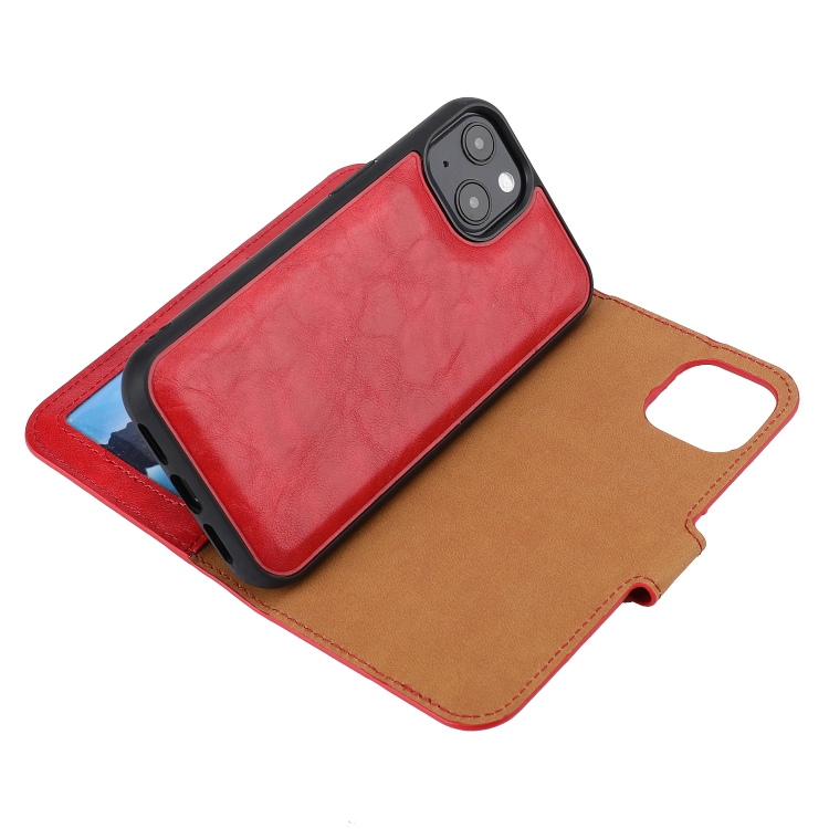 Funda para iPhone 15 de PU con Tapa Horizontal Desmontable Textura Crazy Horse (Rojo)