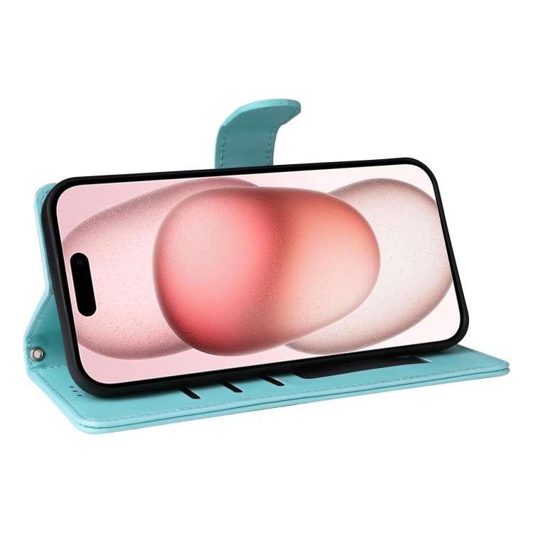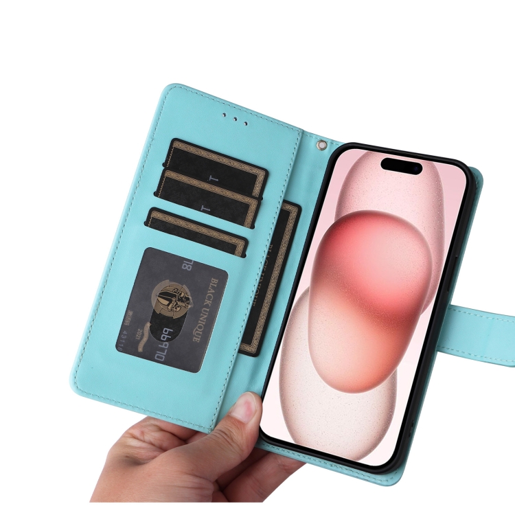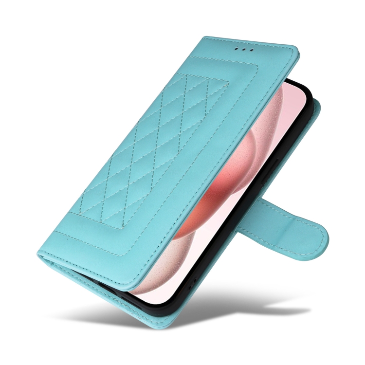Funda de teléfono para iPhone 15 con tapa de cuero Diamond Lattice (Verde Menta)