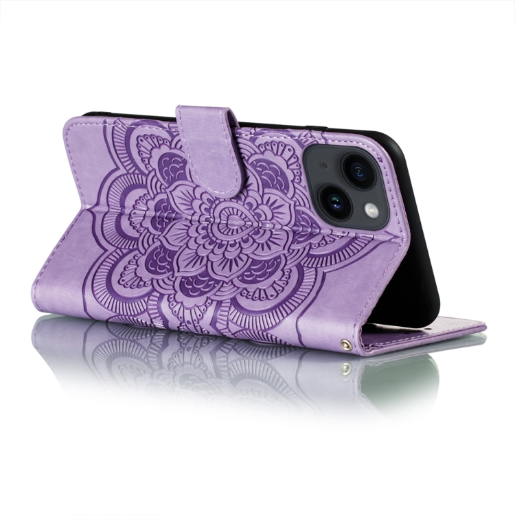 Funda de Teléfono para iPhone 15 Cuero con Estampado Sun Mandala (Púrpura)