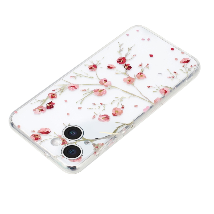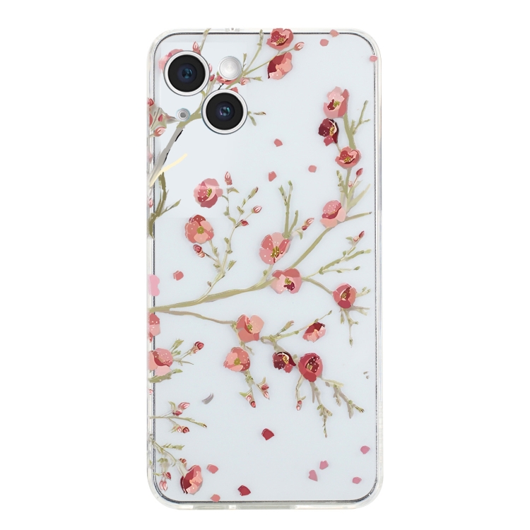 Funda de Teléfono TPU iPhone 15 Patrón Pintura Colorida Flores Rojas