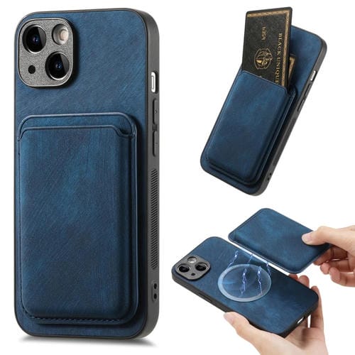 Funda Magnética para Teléfono iPhone 15 con Bolsa de Tarjeta de Cuero Retro (Azul)