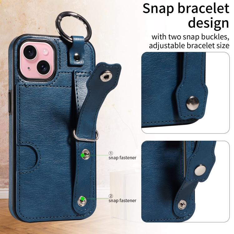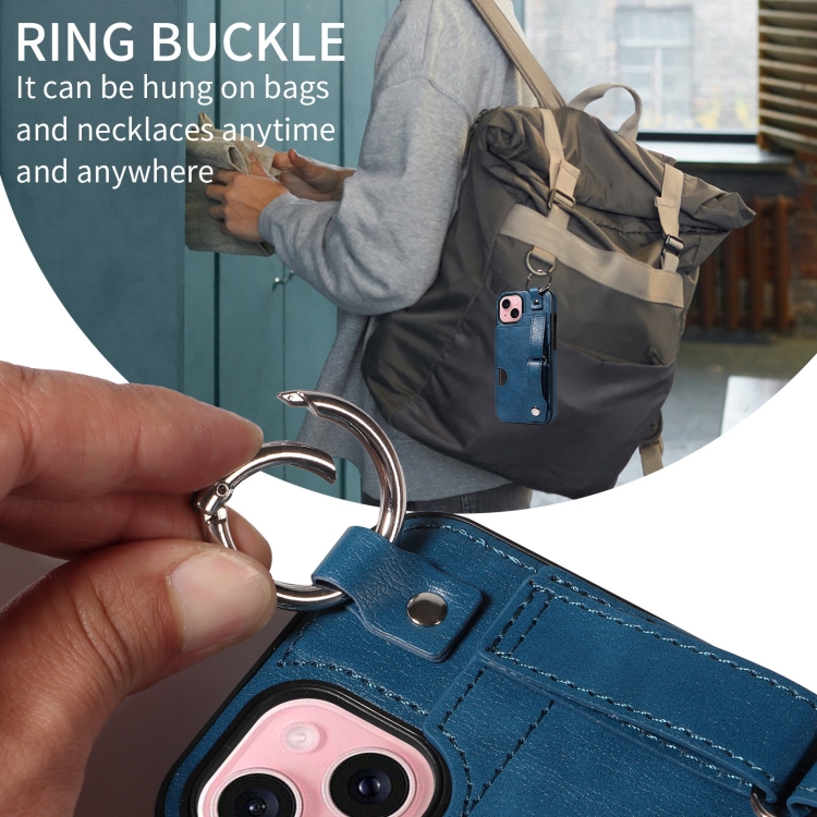 Funda para Teléfono iPhone 15 con Anillo y Ranura para Tarjeta Textura de Pantorrilla (Azul)