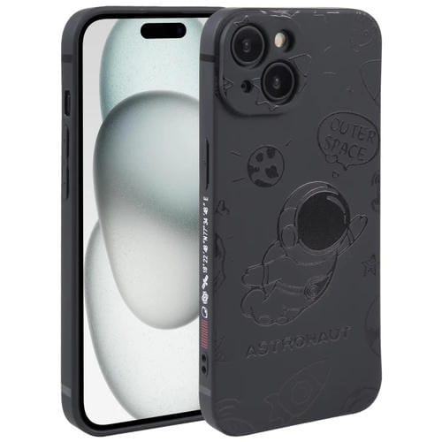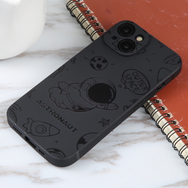 Funda para Teléfono iPhone 15 Silicona Borde Recto Patrón Astronauta (Negro)