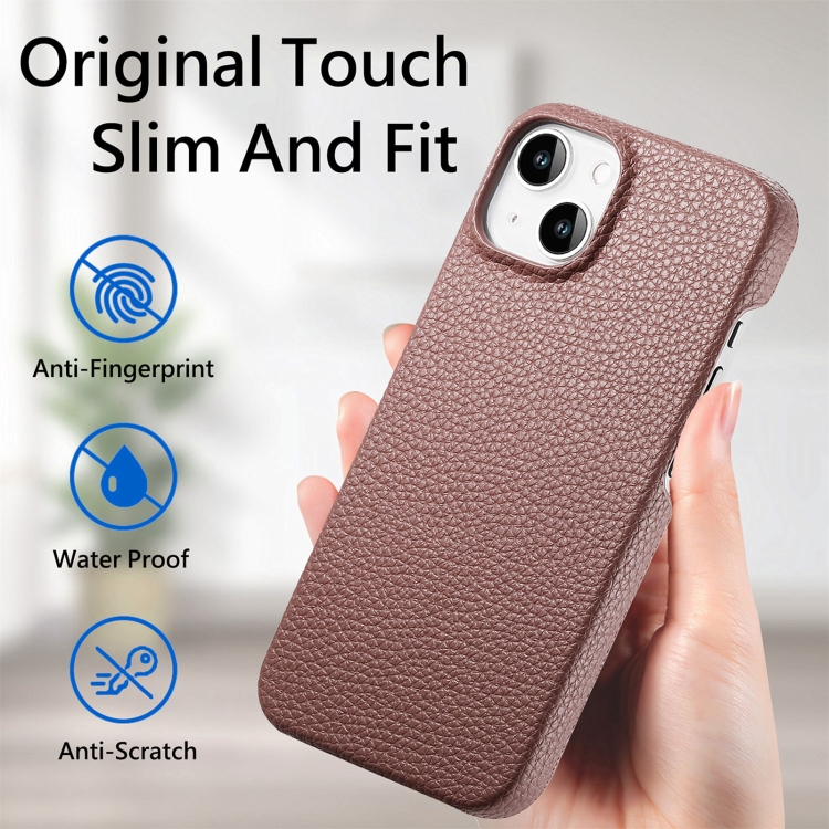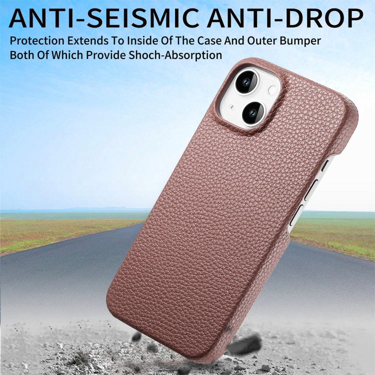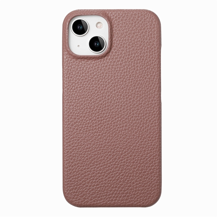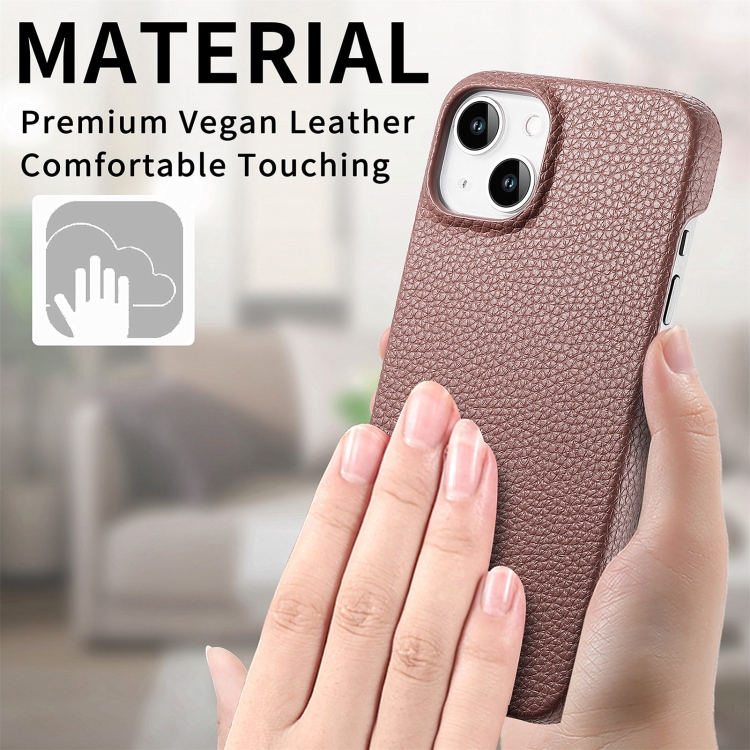 Funda para teléfono iPhone 15 con parte Trasera de cuero y borde de aceite Litchi (Albaricoque Azufaifo)