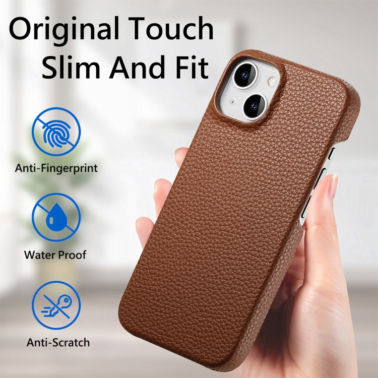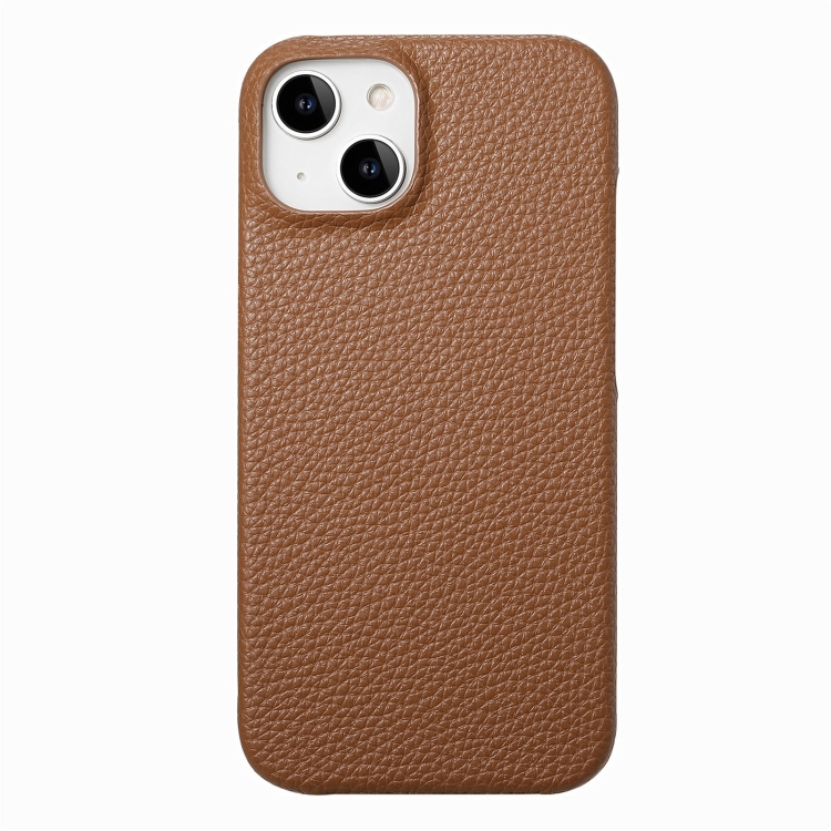 Funda para Teléfono iPhone 15 Parte Trasera Cuero Litchi Oil Edge (Marrón)
